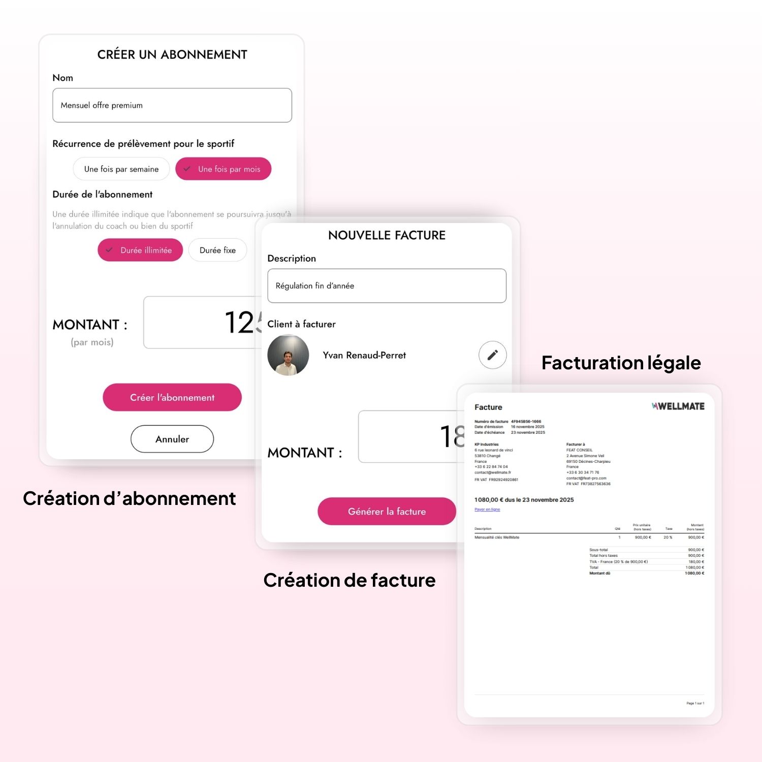 WellMate regroupe toutes les fonctionnalités essentielles à ton business, suivi sportif, alimentaire, gestion administrative, découvre toutes nos fonctionnalités