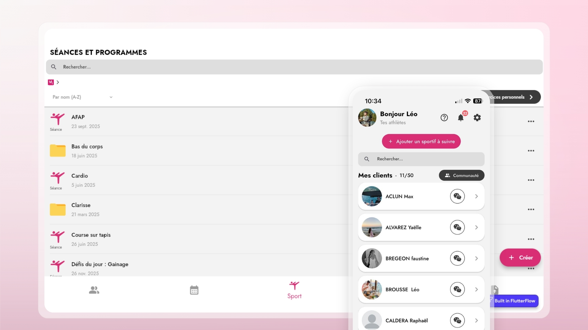 Un outil pratique et ergonomique pour un super suivi avec tes clients. Je gagne un temps considérable ! Je suis bien mieux mes clients et eux partent à la salle avec leurs programmes sur l'appli !