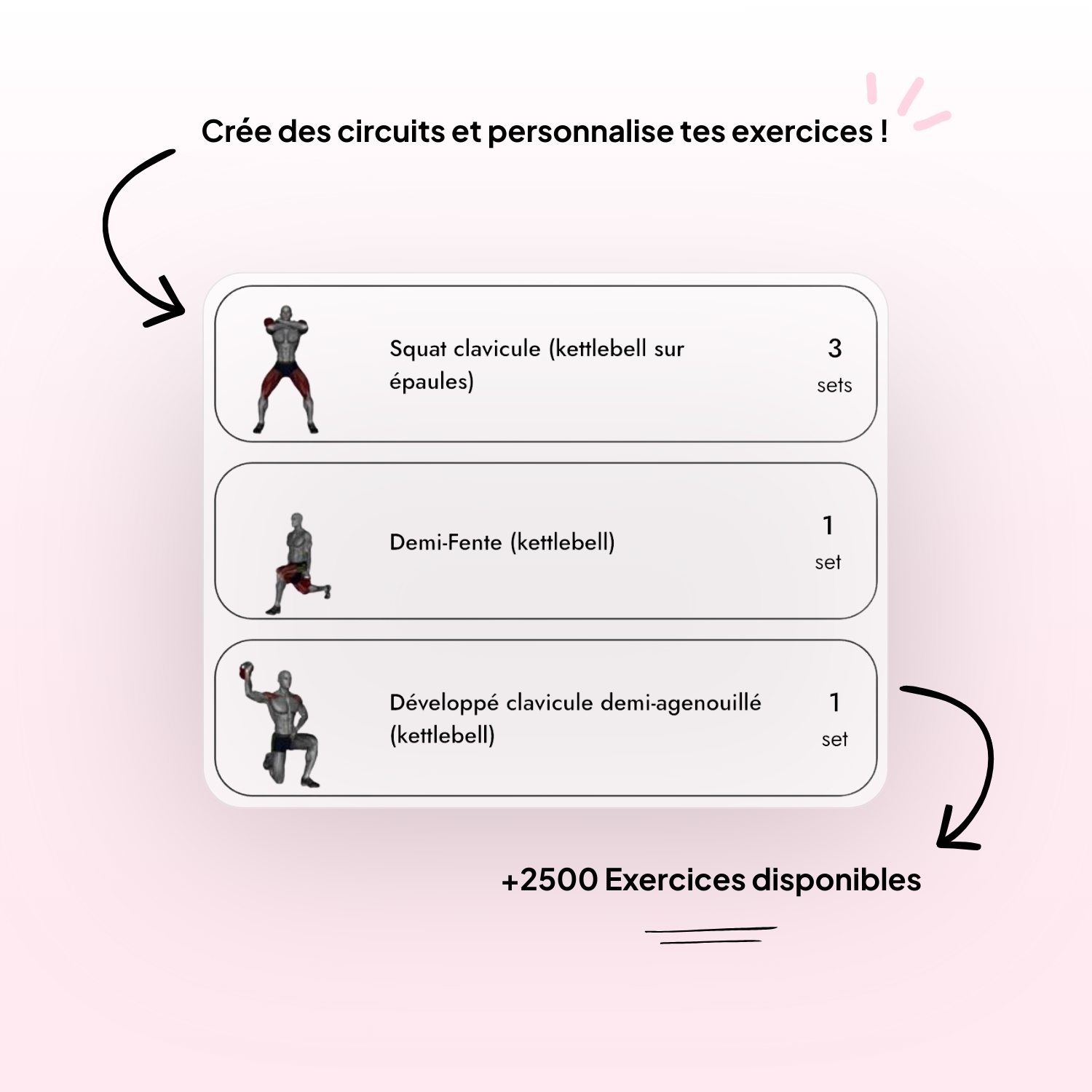 Crée des séances et des programmes, tu peux même ajouter tes propres exercices.